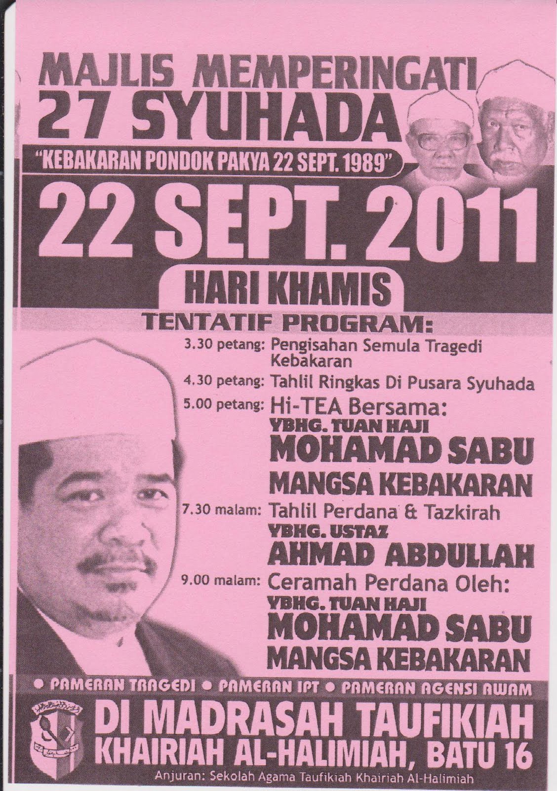 Sedaka Sejahtera Pengarah Projek Majlis Memperingati 27 Pelajar Mangsa Kebakaran Pondok Pak Ya Kecewa Kegagalan Timb Presiden Pas Untuk Hadir