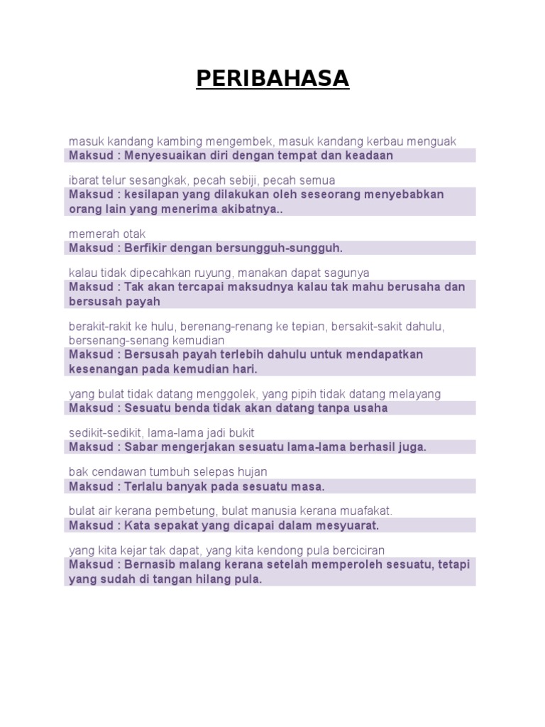 Senarai Peribahasa Dalam Buku Teks Tingkatan 5 Docx
