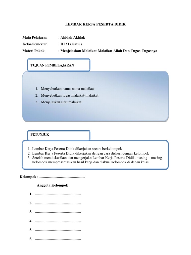 Download Gratis Worksheet Nama Nama Dan Tugas Para Malaikat Malaikat Pendidikan Belajar