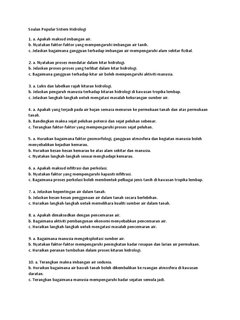 Soalan Popular Sistem Hidrologi Docx