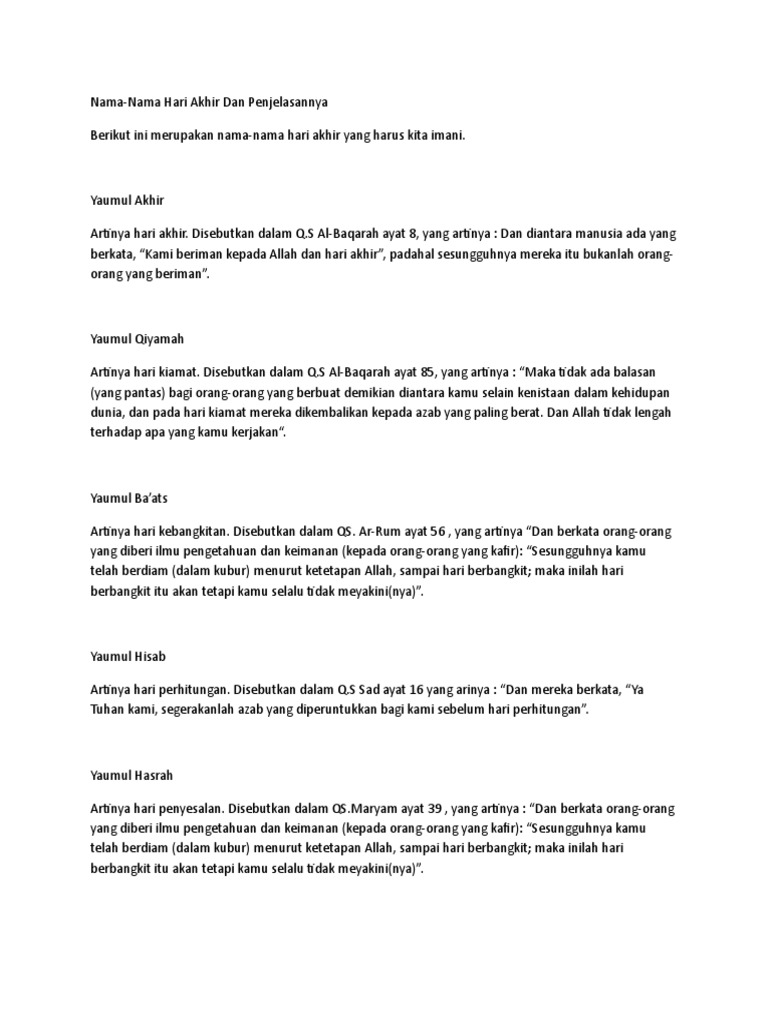 Doc Nama Lain Dari Hari Berbangkit Berdasarkan Dalil Dari Al Dyana Latifa Academia Edu