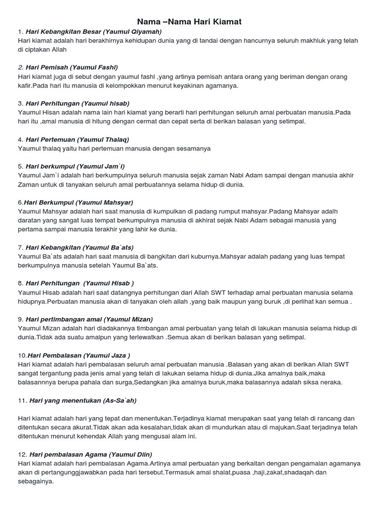 Doc 9 Nama Lain Dari Hari Berbangkit Berdasarkan Dalil Dari Al Quran Arya Benneta Academia Edu